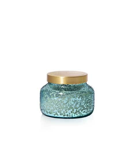 The Viral Volcano scent housed in beautiful aqua mercury glass.