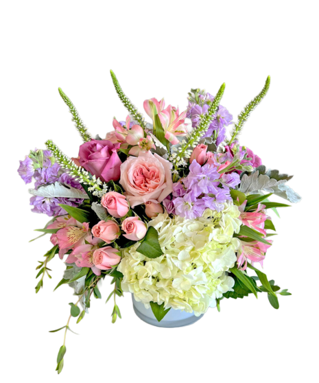 Introducing "Jori," a stunning floral arrangement from Al's Florist in Hollywood, FL, that embodies elegance and charm. This beautiful bouquet features an exquisite array of white hydrangeas, pink roses, and lavender veronica, creating a harmonious blend of soft, pastel colors that bring a sense of tranquility and grace to any setting. The combination of delicate blooms and lush greenery makes "Jori" a perfect choice for celebrating special occasions, expressing heartfelt sentiments, or simply brightening someone's day. Each element of the "Jori" arrangement is carefully selected to ensure the highest quality and freshness. The white hydrangeas provide a lush, voluminous base, while the pink roses add a touch of romantic elegance. The lavender veronica, with its unique shape and vibrant color, adds a delightful contrast that enhances the overall beauty of the bouquet. Accented with subtle hints of greenery, this arrangement is thoughtfully designed to create a lasting impression.